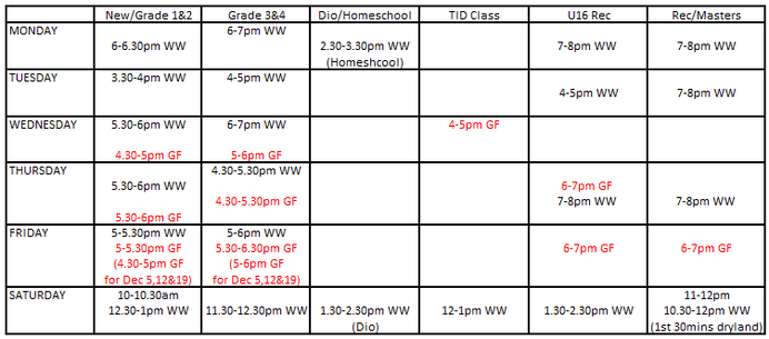 PLEASE NOTE - WESTWAVE CLASSES IN THIS TIMETABLE RUN TO SAT NOV 29; GLENFIELD CLASSES RUN TO FRI DEC 19