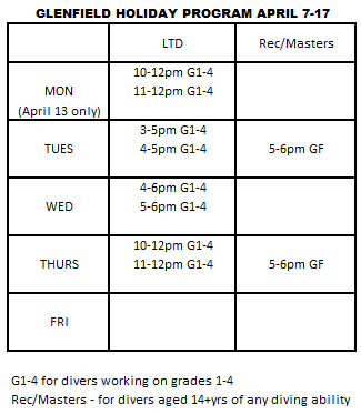 APRIL 7 - 17 (Glenfield pool only West Wave pool is still closed)