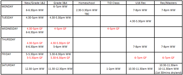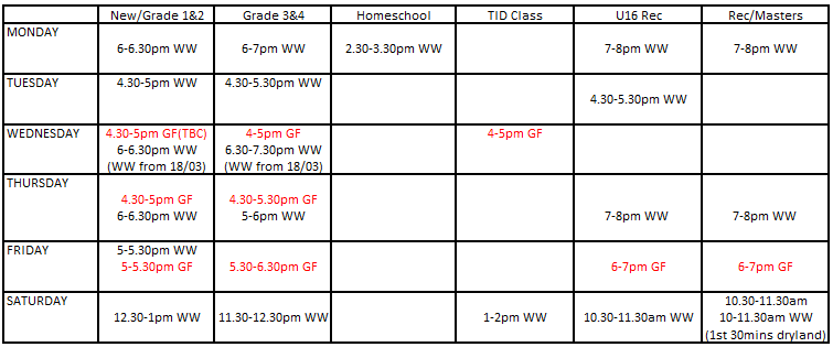 This timetable is for the first half of Term 1 while WW dive pool is closed until March 6