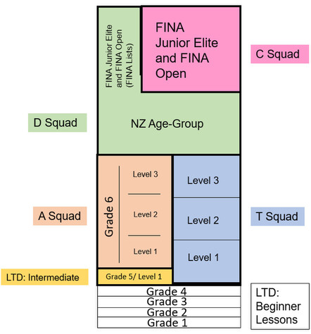 Our club is organised into the Learn to Dive Beginner (LTD) Classes and Squads. The pathway begins with our Auckland Beginner Grading System and progresses all the way up to Olympic level events.