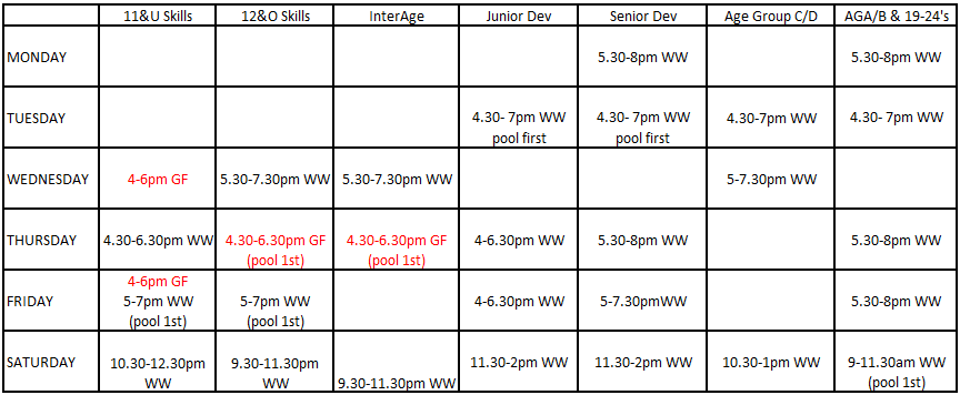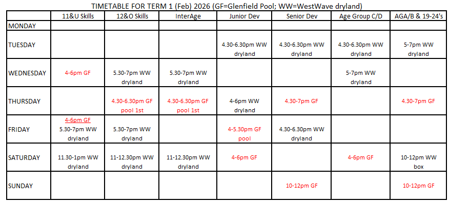 This timetable is for the first half of Term 1 while WW dive pool is closed