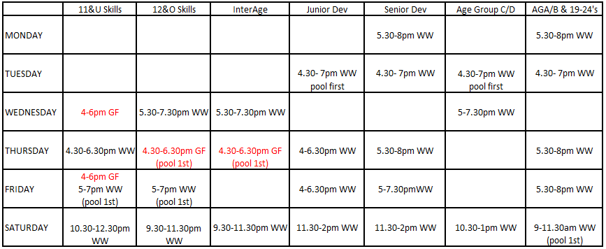 This timetable is for the first half of Term 1 while WW dive pool is closed until March 23